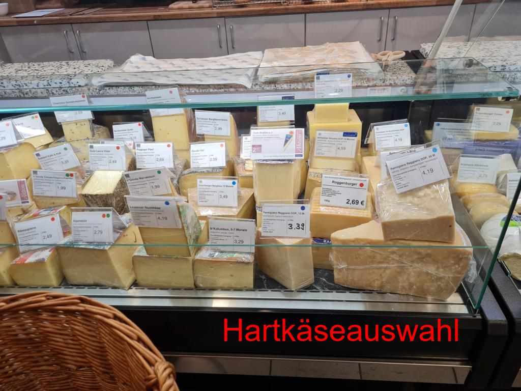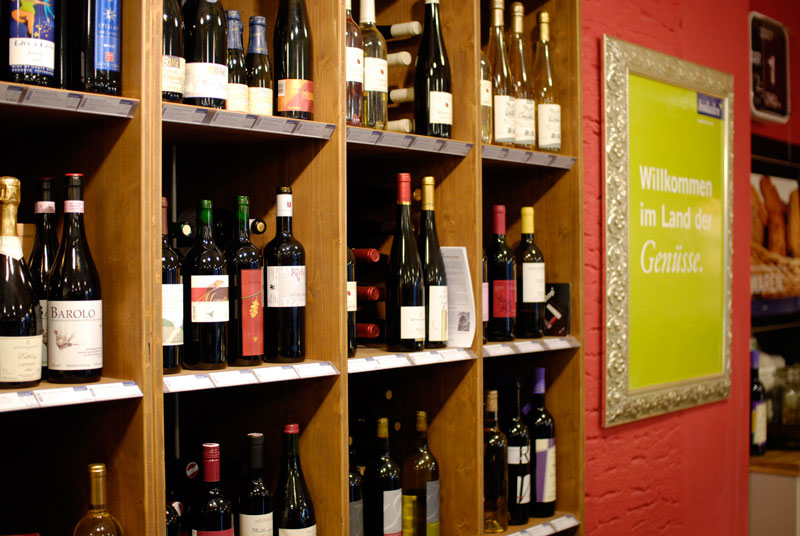 Wählen Sie aus ca. achtzig Sorten Käse von unsere Käsetheke und passend dazu aus ca. neunzig Sorten den richtigen Wein.